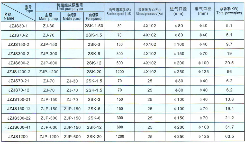 JZJS型系列真空機(jī)組以水環(huán)泵作為前級(jí)泵,該機(jī)組性能特別適應(yīng)于抽除含有大量的水蒸汽帶有一定腐蝕性和可凝性氣體的工藝流程,該機(jī)組質(zhì)量可靠、性能穩(wěn)定、已裝配電控制系統(tǒng),旁路管、益流閥,技術(shù)參數(shù)為4x102與10,該機(jī)組適用于真空蒸溜、濃溜、脫水結(jié)晶、干燥以及電力容器、變壓器制造等單位使用。